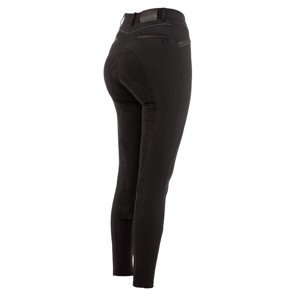 These pants are not only functional, but also stylish. Adorned with sparkling tape and silver stitching, they are sure to turn heads. The microfiber full seat in tone adds an extra touch of elegance. Don’t miss out on the opportunity to add these pants to your wardrobe.
