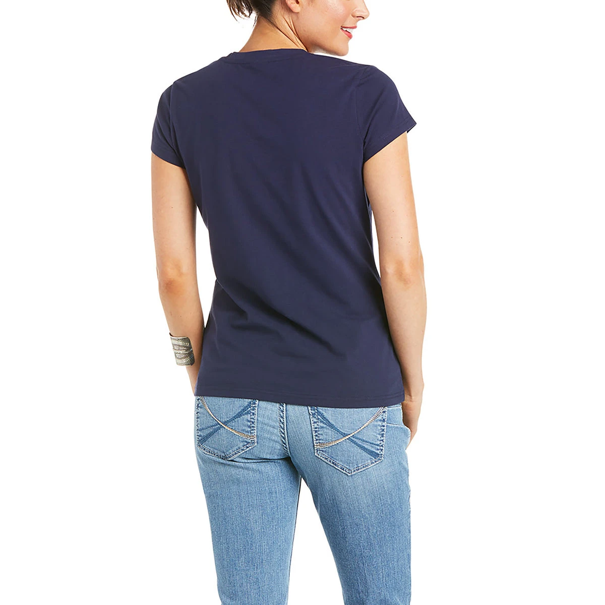 Highlighted with a sunburst graphic, this Ariat peacoat navy t-shirt provides an exceptional fit, with added durability and style.
