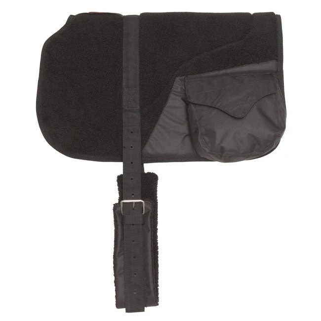 Fleece pad with fleece girth for bare back riding. This model features a cut back wither for a better fit. It also includes a pocket on each side and a 600ml drink bottle, which is also available for purchase separately.