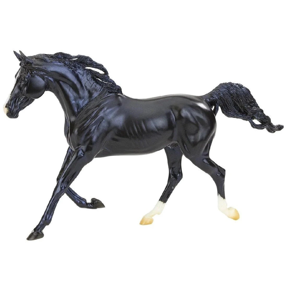 Arabians are one of the most popular horse breeds, and this beautiful black stallion with white markings is a sight to behold!