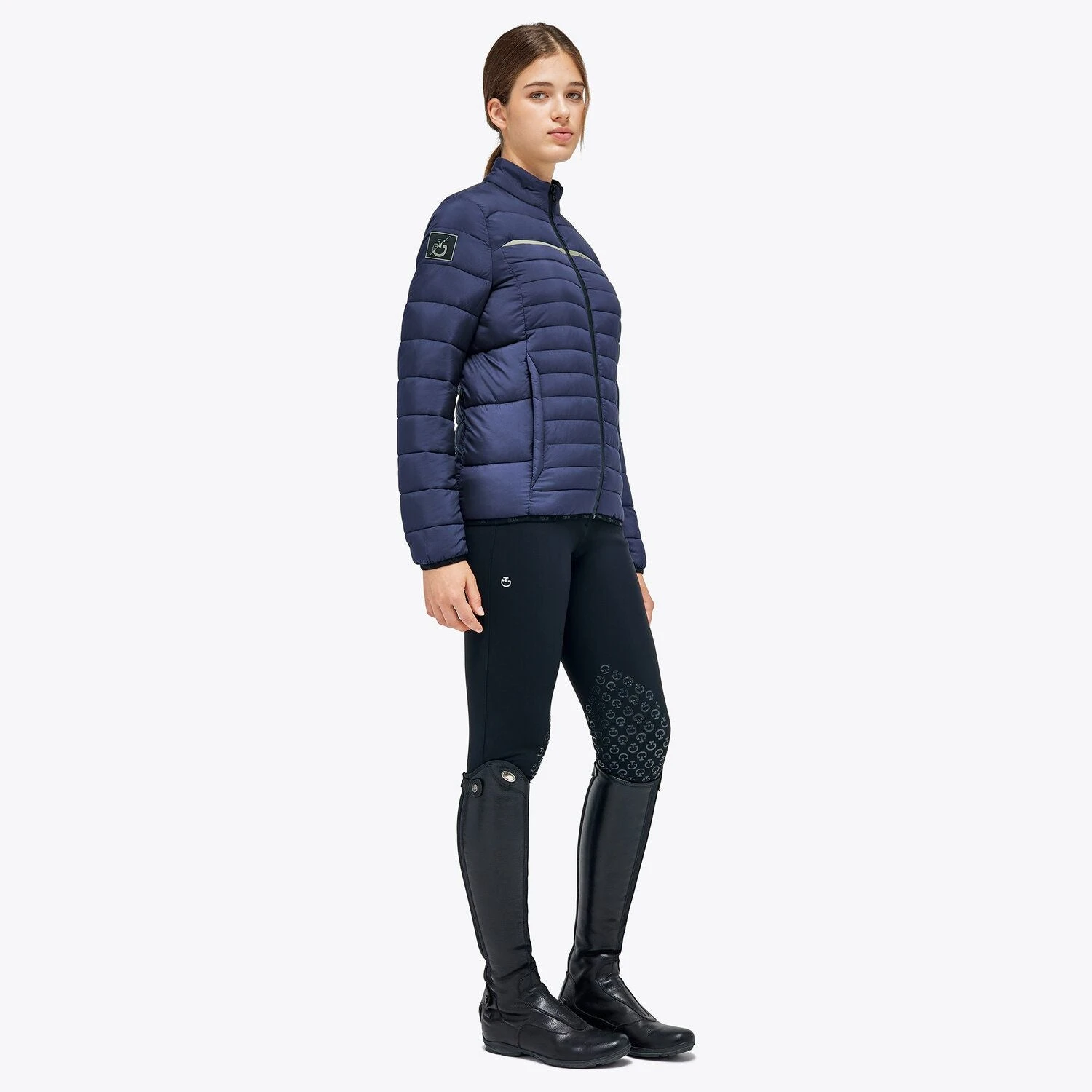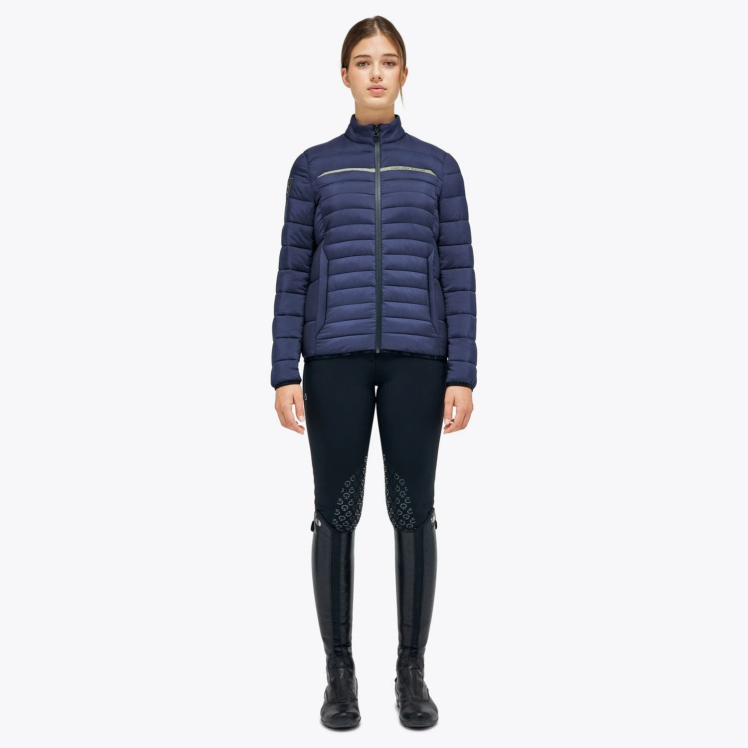 The high neck and zip in heat-sealed tape are functional details that offer comfort during all outdoor activities, while the logo-shaped puller and the Lycra® edging with raised Cavalleria Toscana lettering are smart references to the brand’s aesthetics.