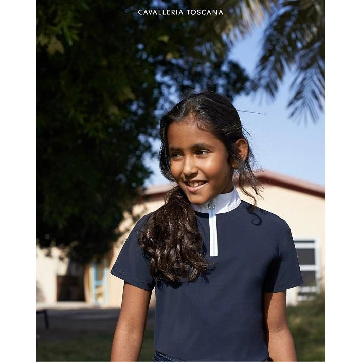 A classic polo shirt for young equestrians designed by Cavalleria Toscana – presents a comfortable and functional fit while ensuring technical performance of the product for the rider both on and off the horse.