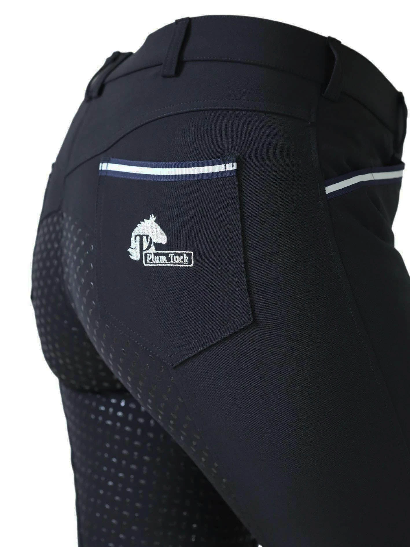 In classic black with contrasting highlights on the pockets these beautiful Breeches are perfect for warmer weather conditions. CoolMax fibres are breathable and moisture wicking keeping you cool, dry and comfortable, they work as hard as you do. The fabric is soft, light and durable. Four way stretch allows them move with you effortlessly. Silicone seat grip gives you extra security in the saddle, while still allowing you the movement you need. Sports comfort technology, in stylish and affordable breeches.