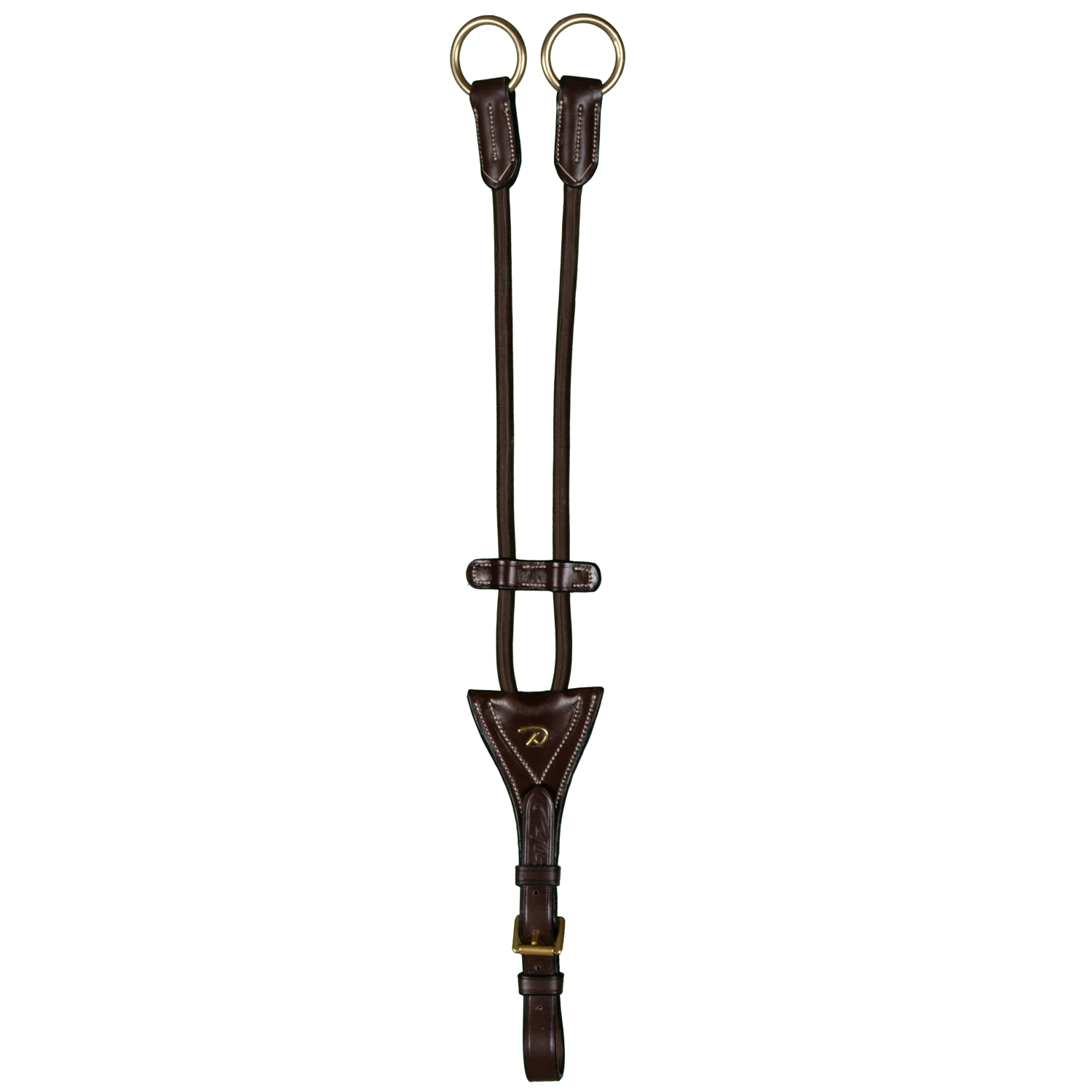 This elastic running martingale attaches to a yoke or breastplate by a roller buckle.