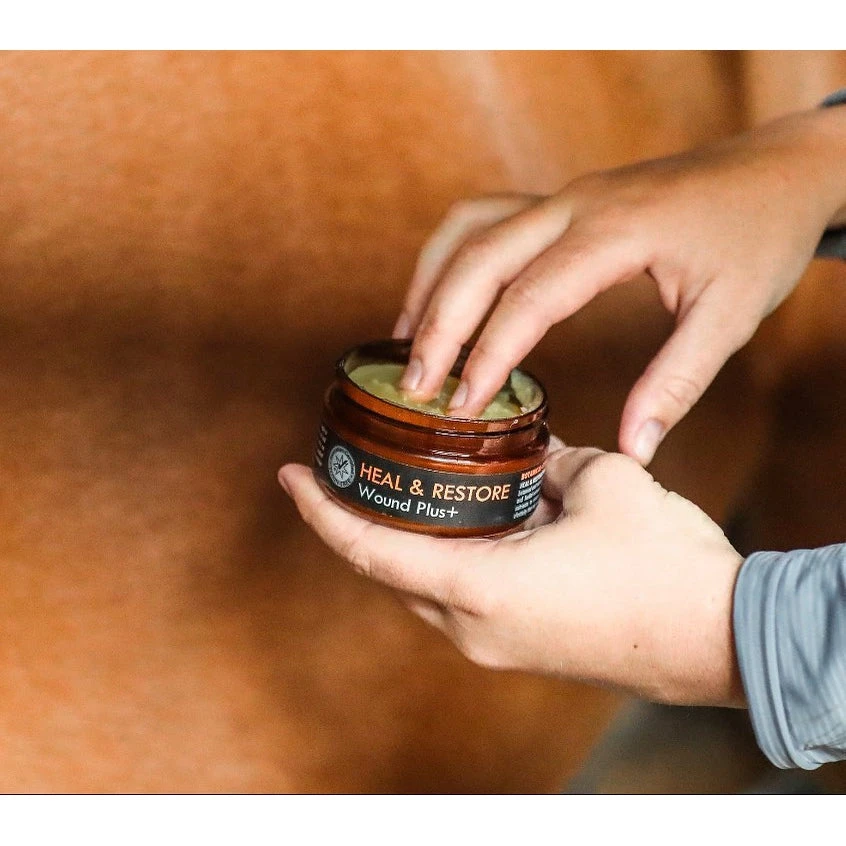 Dry and clean affected area to remove all dirt and debris. Apply a generous quantity directly onto the wound. As HEAL & RESTORE Wound Plus+  is an oil-based product, take extra precaution to make sure to cover the wound if it is exposed to direct sunlight to prevent possible sunburn.
