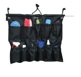 On the side of a float or stable wall, it has 11 pockets for bottles, brushes, and other supplies.