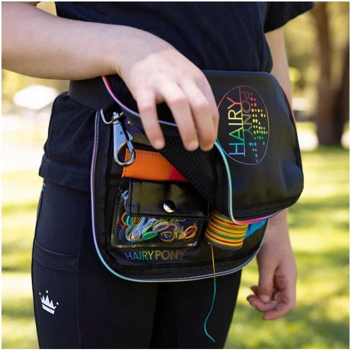 Our HAIRY PONY KIDS PLAITING APRON offers all of your favourite features from our flagship apron, including comb slots, mesh & material pockets, thread reel, and magnetic needle cushion. It is made from the same sturdy material as our HAIRY PONY PLAITING APRON and has vibrant rainbow accents.