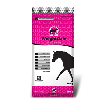 The nutritional function of WeightGain is very specific – to increase body weight and condition. WeightGain is a blend of quality ingredients that will help combine conformation, body condition, brilliant depth of coat colour and a relaxed calm disposition for that show and sale success you desire! As WeightGain is a high fat, high fibre supplement, the incidence of digestive upsets and metabolic conditions are greatly reduced.Â