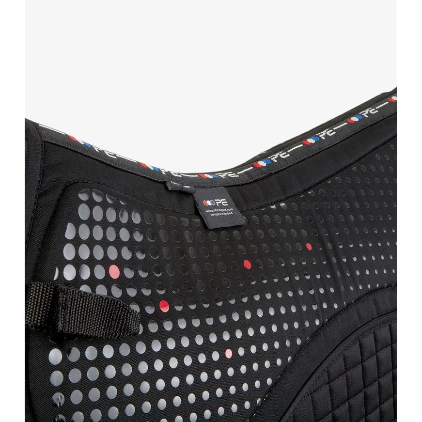 The Tech Grip gel upper is shaped to fit neatly under your saddle, helping to reduce unwanted movement and slipping. The upper section is also gently cushioned with foam and lined with soft, anti-slip fabric which is comfortable against your horse’s skin and further prevents slipping.Patterned stitching on the quilted lower section gives the pad an exclusive look and feel. A 600 denier polyester girth panel provides anti-rub protection and our adjustable Velcro girth straps and adjustable D loop straps allow you to easily secure and adjust the pad to your saddle. The perfect anti-slip jump square for everyday or competition use.