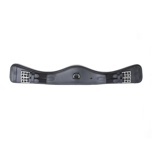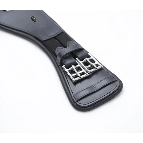Crafted from luxurious Italian leather with maximum comfort and durability in mind. Anatomical shaping provides more room behind the horse’s front legs, decreasing restriction with the potential of increasing performance. Specifically designed for dressage saddles, monoflap saddles or saddles which have longer girthing straps. A central D-Ring attachment allows a martingale, breastplate or training aid to be attached if needed. Smooth leather panel work combined with high quality stitch lines provide a sleek, professional aesthetic. Finished with premium quality stainless steel buckles, this dressage girth is ideal for use on sensitive horses in everyday work or at competitions.