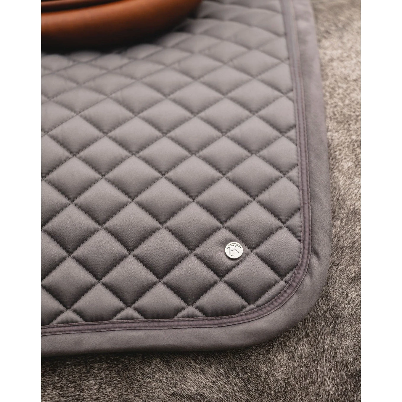 â€We adore this elegant saddle pad with its eye-catching velvet piping. It has a timeless and classic look but truly stands out with all the unique details.”