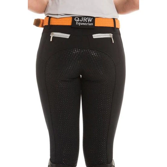 All have full silicon seats and back pockets with silver zips, fake front pockets, QJRW embroidery on the front thigh and our popular lycra sock.