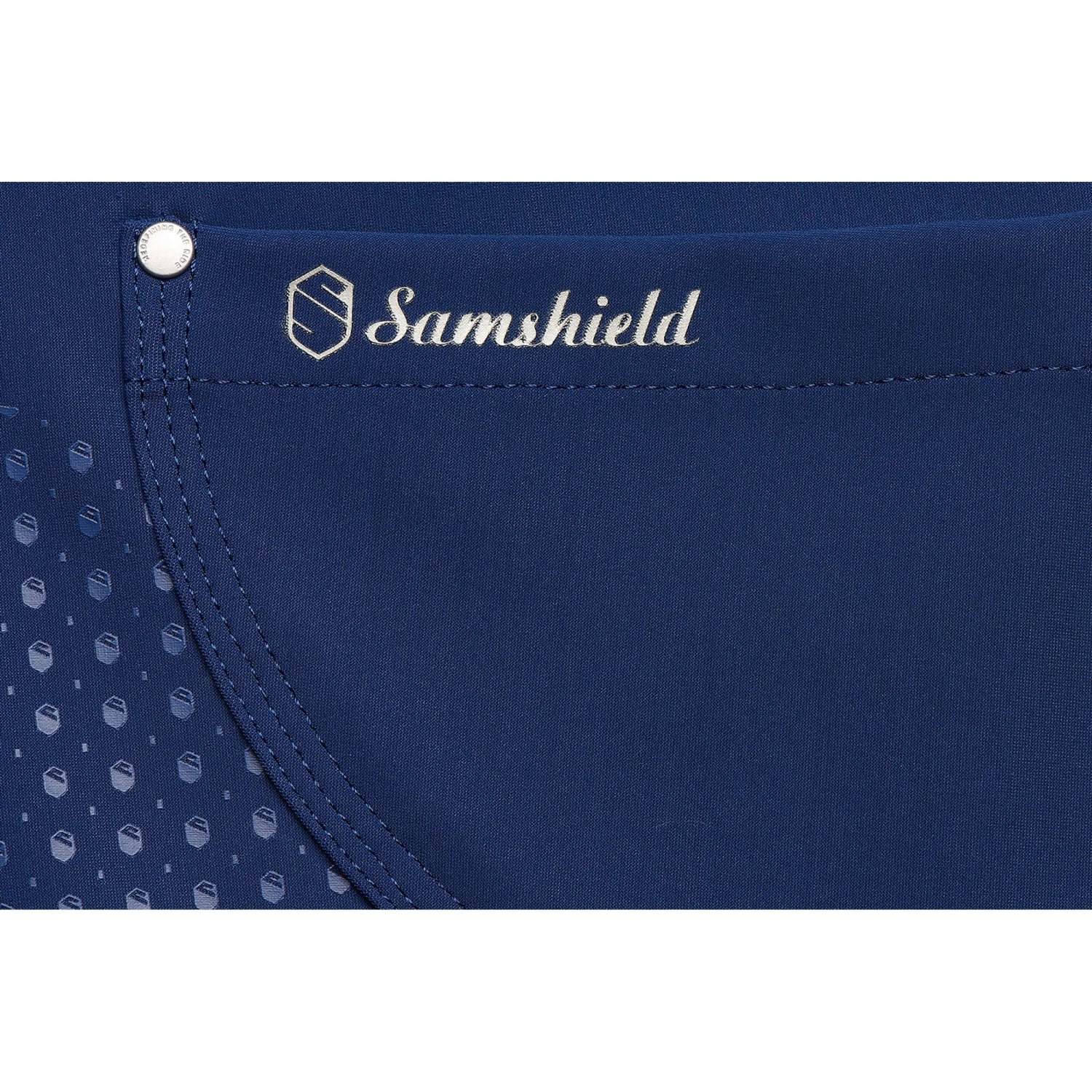 The design of the Castille pockets is reminiscent of jeans. They are decorated with details combining topstitching and rivets as well as a mix of Swarovski® crystals and metal dots on the front pockets and the Samshield bazon on the thigh, for a unique style and refinement.