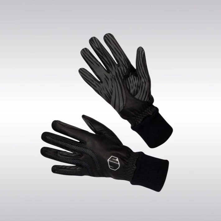 € Palm: Strong Suede fabric base fingerprinted with real silicone: offers exceptional added grip, hand-to-horse connection, flexibility as well as extreme durability ;