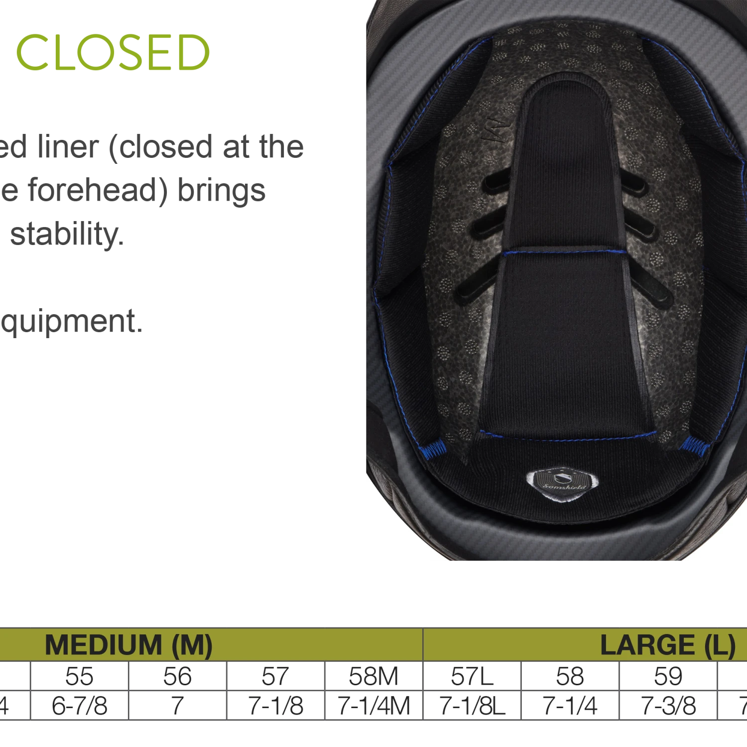 Liner Closed (closed at the level of the forehead): brings additional stability