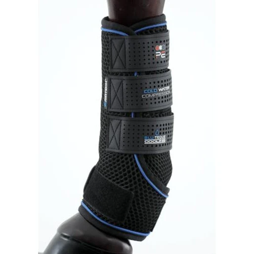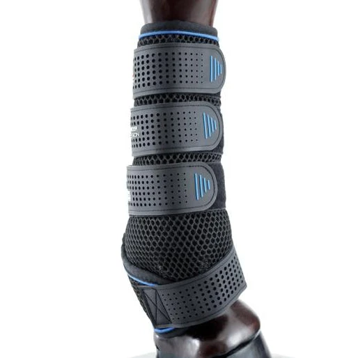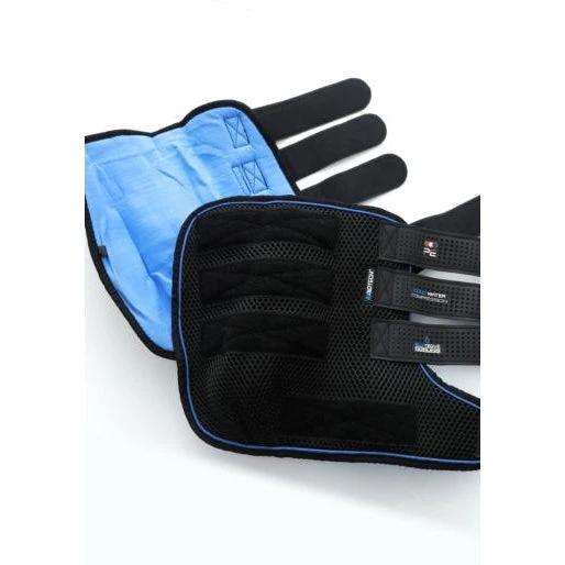 The boot has been engineered to provide uniform cooling without restricting movement. The air is the element that keeps the fabric cool once it has been activated by water. The 3D sports mesh outer allows a constant flow of air to reach the cold water material which prolongs the cooling effect of the boots. Once saturated the cold water fabric is activated and provides a cold cushioned layer anatomically shaped to your horse’s leg. The adjustable Velcro straps create compression to further aid recovery.