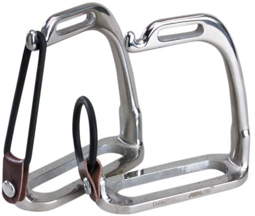 The Peacock iron is very popular for use by children. It is a variety of safety iron, designed so that the rubber ring is located on the outside of the foot, and will come away in the event of a fall. The idea of this is that the foot is released and prevents the rider from being hung up.
