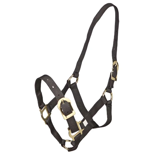Great basic halter made from 25mm (1) polyproylene webbing with stamped brass plated fittings.